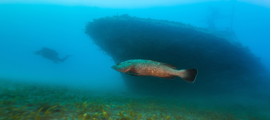 The Lady Thetis wreck is one of two wrecks that make up the Dasoudi Marine Protected Area (MPA), alongside the Costandis wreck, with both sunk